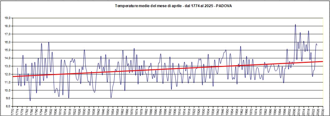 GRAFICI MENSILI DELLE TEMPERATURE MEDIE a PADOVA dal 1774 a ...