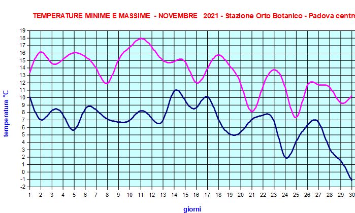Da giugno 2019 i dati sono quelli dell'Orto Botanico di Padova, situato in zona centrale