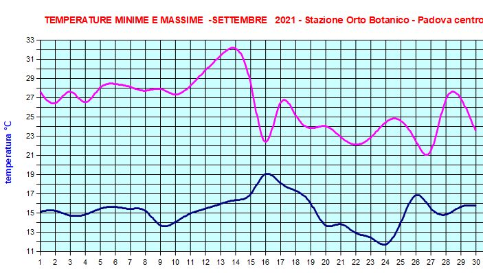 (*) La stazione di MeteoPadova è posizionata in ambiente urbano e quindi i suoi valori possono discostarsi verso l'alto anche di un paio di gradi rispetto alle misurazioni statistiche effettuate (forse, perché non è stato possibile trovarne la fonte) in ambiente meno cittadino. Inoltre, le medie trentennali 1961-1990 sembrano sempre di più essere piuttosto superate, vista la tendenza generale ad un oggettivo riscaldamento dell'atmosfera.
