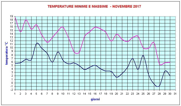 Temperatura minima media: 0.4 °C ( 0 °C) Temperatura massima media: 7.5 °C ( 6 °C)