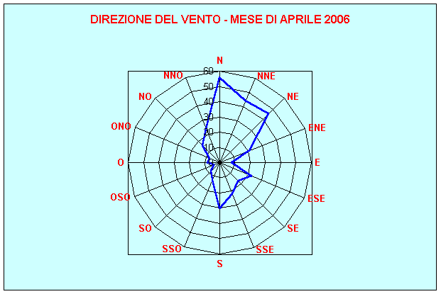 Grafico della direzione prevalente del vento (SSE) In parentesi le direzioni prevalenti nel periodo 1961-1990 |