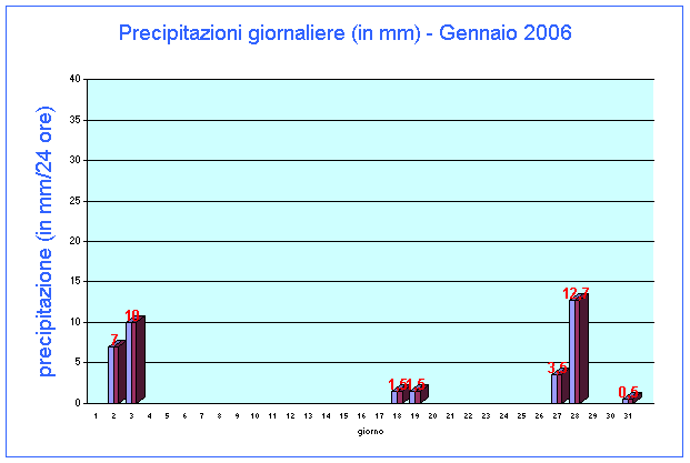 Temperatura minima media: - 0,5 °C (-1 °C) Temperatura massima media: 6,4 °C (6 °C)